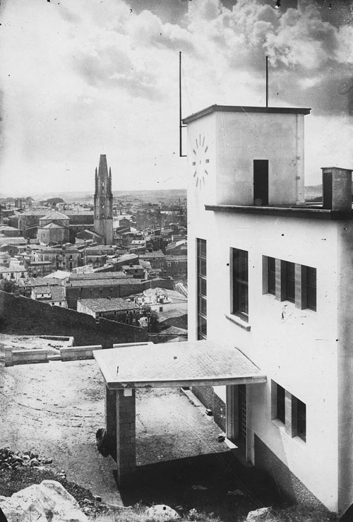 (Ampliar) - L'escola Ignasi Iglésias. Al fons, la muralla de Sant Pere de Galligants i l'església de Sant Feliu. 1932-1940. Valentí Fargnoli i Annetta. CRDI - Ajuntament de Girona.