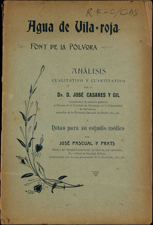 (Ampliar) - Portada de 'Agua de Vila-Roja: Font de la Pólvora'. José Casares Gil. 1902. Universitat de Barcelona.