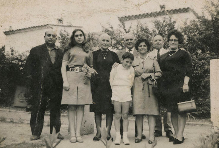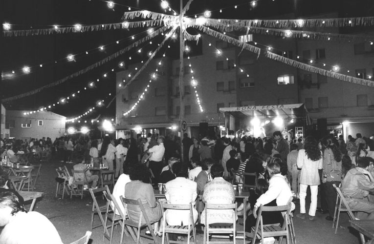 El 1959 el barri va celebrar la seva primera festa major, els dies 13, 14 i 15 de juny. Entre d'altres actes, es va celebrar una missa de campanya, una traca valenciana, quatre sardanes, un festival folklòric a càrrec d'aficionats del barri, i l'actuació de la orquestra Canigó. La celebració de la festa per Sant Antoni va ser degut a què la majoria dels veïns estaven relacionats amb el ram de la construcció, del que el sant n'és patró. ![]() (Ampliar) - Retrat de grup d'una família al barri de Germans Sàbat, davant la vivenda número 192. 17 de juny de 1968. Autor desconegut. CRDI - Ajuntament de Girona