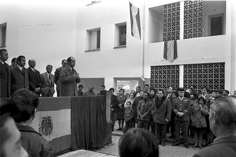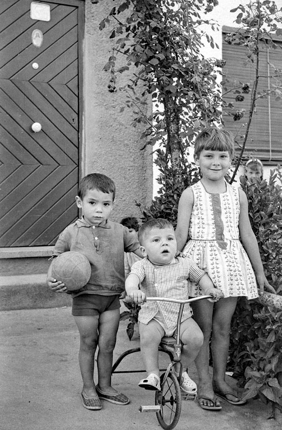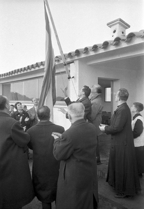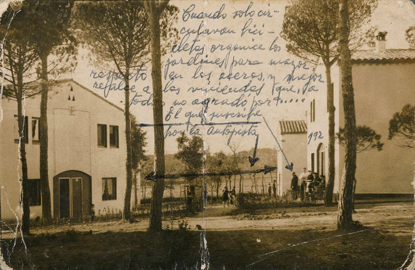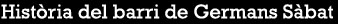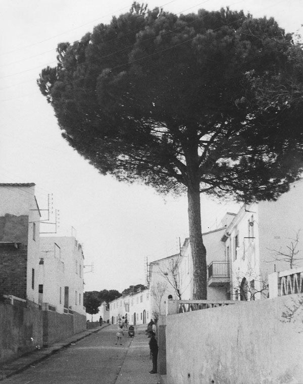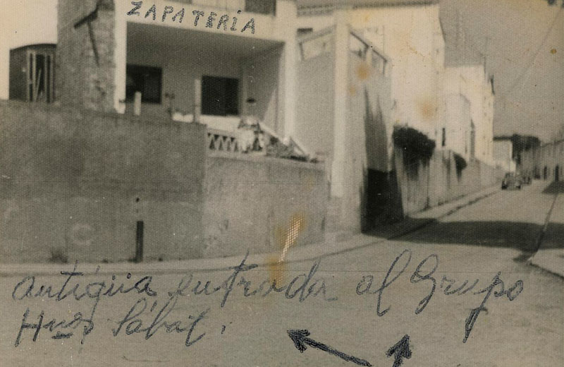 L'11 d'octubre de 1960 es va constituir la Mutualidad de Previsión Social de Hermanos Sàbat, implantada des de la Federació de Mutualitats de Catalunya. Una altra fita important assolida aquest any va ser la inauguració oficial de les escoles el 18 de desembre; d'una manera real ja funcionaven des del mes d'octubre. L'any 1967 es començà a construir l'església del poble. ![]() (Ampliar) - Carrer del grup de Germans Sàbat que havia estat l'antiga entrada al barri. 1960. Autor desconegut. CRDI - Ajuntament de Girona