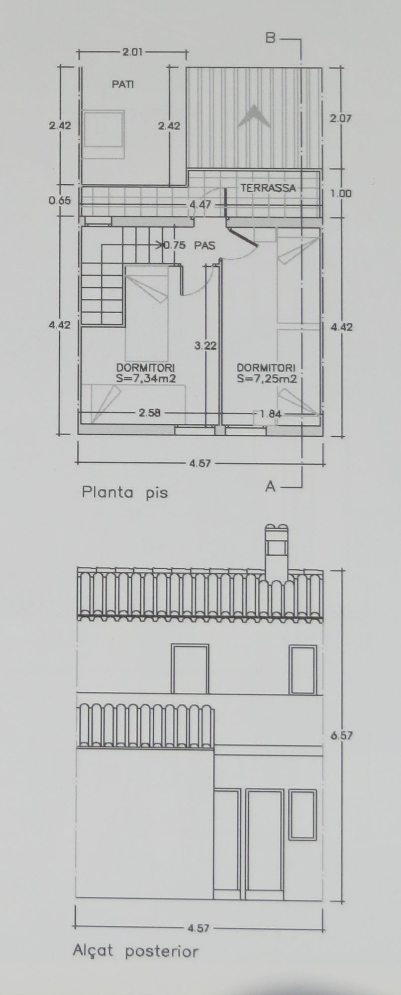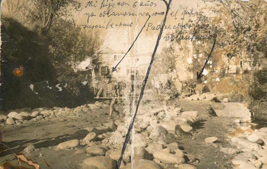 Les cases tenien dos pisos: en el primer hi havia una cuina-menjador, un lavabo i una habitació; i en el segon, dues habitacions més. El seu preu era de 42.605,26 pessetes, que varen pagar a raó d'una aportació inicial de 7.000 pessetes, 160 durant els primers vuit anys i vuit mesos primers, i 130 durant 31 anys i quatre mesos. ![]() (Ampliar) - Camí d'accés al Grup de Germans Sàbat pocs mesos després de començar a habitar-se el barri. El camí, sense urbanitzar i ple de fang i còdols, creua el llit de la riera Bullidors. Nen ajudant a les tasques de neteja del camí. 1960. Autor desconegut. CRDI - Ajuntament de Girona