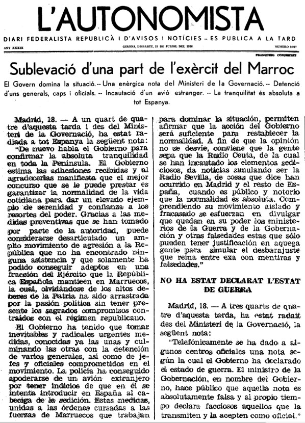 1. El juliol de 1936. L'inici de la guerra a Girona.