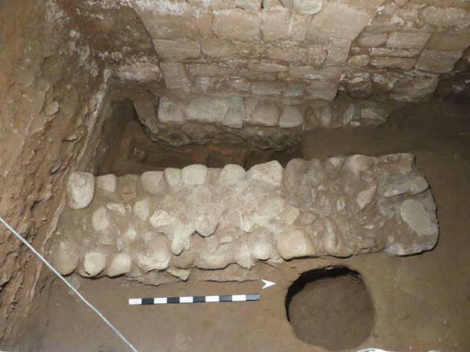 Abans de la construcció de l'edifici medieval, la zona va funcionar com un cementiri durant 200 anys, des del primer quart del segle VIII i fins el primer quart del segle X. Els arqueòlegs hi han constatat l'existència d'enterraments amb ritual cristià al costat d'enterraments amb ritual islàmic, la qual cosa pot indicar una certa tolerància en aquell moment històric.