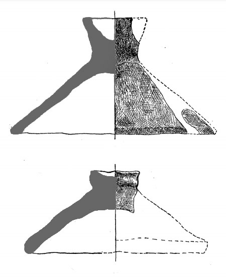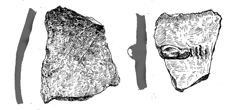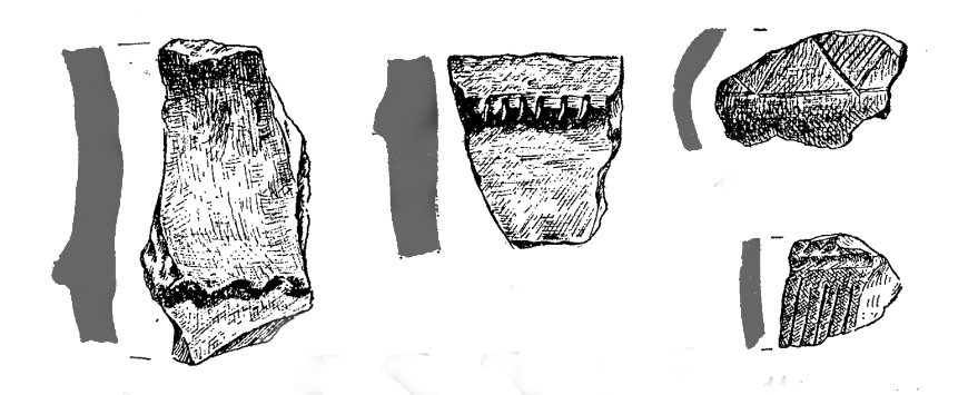 (Ampliar) - Fragments ceràmics localitzats al jaciment de Montilivi. Dibuix de Mercè Ferré, gentilesa de l'autora.