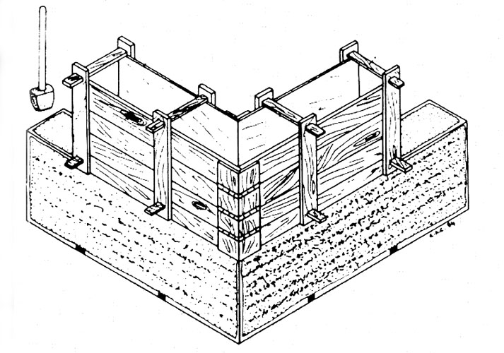 (Ampliar) - Tècnica de construcció avançada utilitzada a Montilivi. Publicat a "Girona abans de Girona. Prehistòria", op. cit.