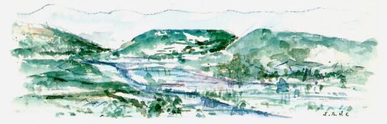 Els pastors del pla practicaven l'enterrament íntegre del cadàver dins una fossa; a aquesta tècnica funerària se l'anomena sepulcre de fossa. En els dos indrets esmentats, el Puig d'en Roca i Sant Julià de Ramis s'han localitzat necròpolis que contenien setze enterrament al primer i quatre al segon. De fet, per la coincidència del tipus d'enterrament i la composició del dipòsit se les considera com dues parts d'una mateixa necròpolis. ![]() Figuració del paisatge gironí durant el Palolític. Aquarel·la de Santi Roca D. Costa 7. De campaments a coves i de coves a cases.