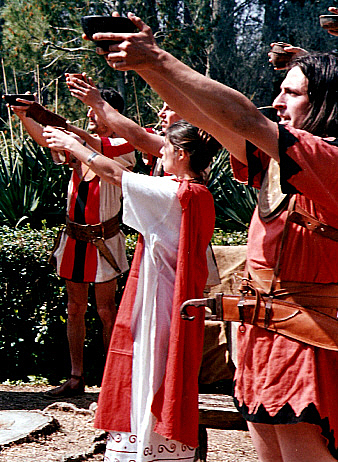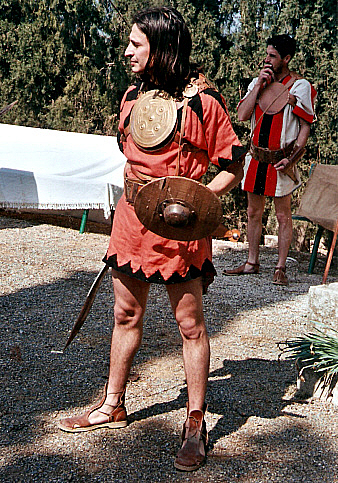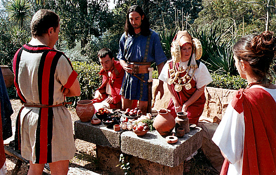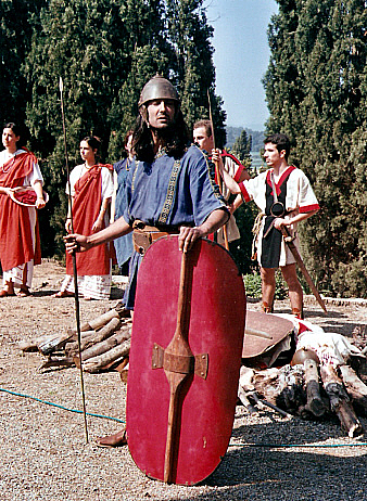 Amb el desembarcament a Empúries del primer exèrcit romà el 218 aC, amb motiu de la segona guerra púnica, l'entrada de Roma a les nostres contrades va ser un fet; l'actitud dels indigets, que tenien la seva capital a l'oppidum ben fortificat d'Ullastret, va ser de permetre la circulació dels nouvinguts. ![]() Cerimònia d'inhumació a Ullastret. Reconstrucció històrica feta el 2002. Cató va reorganitzar el país, fent abandonar els oppida i altres fortificacions que va considerar perillosos, i en va recolzar i construir d'altres més adients als seus propòsits (3). A l'establiment de Sant Julià, les darreres excavacions han posat de manifest la construcció a la part central de l'oppidum d'una plataforma, cap al darrer terç del segle II aC, que va exigir la desaparició d'un dens nucli de població, damunt el que es va construir un temple itàlic d'ordre toscà. Notes (1) - Josep Maria Nolla, a "De Kerunta a Gerunda" amplia que l'urbanisme s'ordenà a partir de carrers llargs i paral·lels disposats en diverses alçades que des del punt d'entrada es perllongaven cap a l'est. Altres de perpendiculars, molt costeruts, els posaven en comunicació. No eren altra cosa que la roca retallada. Les cases, sovint senzilles i rectangulars eren obrades retallant parcialment la roca i creant grans murs de contenció amb rebles enormes on el sòl natural davallava. El sòcol era fet amb pedra local, un esquist pissarrós, posat en sec o lligat amb fang, sovint de gran alçada, i damunt tàpia o tovot, amb un sostre de bigues de fusta, recobertes de branques, palla i fang. En les darreres excavacions s'han identificat complexos de més de cinc estances amb llars i forns de pa de mides considerables. (2) - El 197 aC, el Senat donava poders especials als magistrats de l'any per fixar les fronteres de les dues províncies en què es dividia la part controlada de la Península Ibèrica, la Provincia Hispania Ulterior i la Citerior. Josep Maria Nolla, a l'article "Kerunta: L'oppidum de Sant Julià de Ramis", dins "De Kerunta a Gerunda". Tornar al text (2) - Josep Maria Nolla, a l'article esmentat, exposa que l'actuació del cònsol no era altra cosa que l'aplicació de la vella tàctica militar i política de Roma: divide et impera. Calia tallar caps, castigar, trencar la coherència interna dels populi però sense destruir l'estructura productiva ni l'entramar polític: el paper que havien representat uns oppida ara els farien uns altres. Tornar al text Bibliografia |