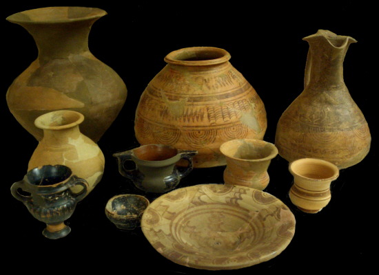 La població ibera que més transcedència té en la història de la nostra ciutat, és la que correspon al poblat ibèric de Sant Julià, descobert per F. Riuró el 1934, i situat damunt el puig del mateix nom, des d'on es domina el Ter, el Congost, la plana de l'Empordà i les planes fluvials de Girona. Aquest punt estratègic i de pas obligat entre les dues zones, ocupat des de mitjan segle VI aC, tenia una importància cabdal de comunicació: des del cim de Sant Julià són visibles les dues colònies gregues més importants, Rhodes, l'antiga Roses, i Emporion, Empúries. ![]() Vaixella ibera i importacions gregues del Castellet de Bernabé. (Wikipèdia) Un nucli inicial, del segle VI aC, va ser densament urbanitzat al segle IV aC, amb cases i casals disposats en diversas alçades, seguint els desnivells del terreny (1). El creixement va seguir cap a llevant i al sud-est, i a finals del segle V i inicis del IV aC hauria assolit la màxima expansió. 12.1. L'arribada de Roma.