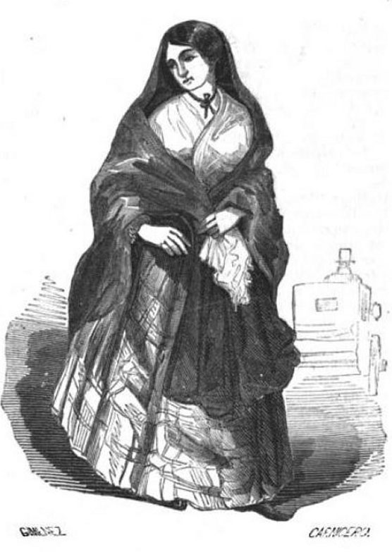 (Ampliar) - Prostituta ('La mujer del mundo'). 1850. Publicat a "Los Españoles pintados por sí mismos". Viquipèdia.