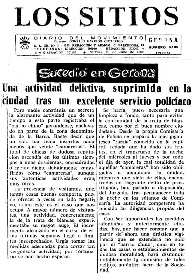 (Ampliar) - Premsa. Acció policial al 'Barri Xino'. Los Sitios, 25 de juliol de 1959. Fons Ajuntament de Girona.