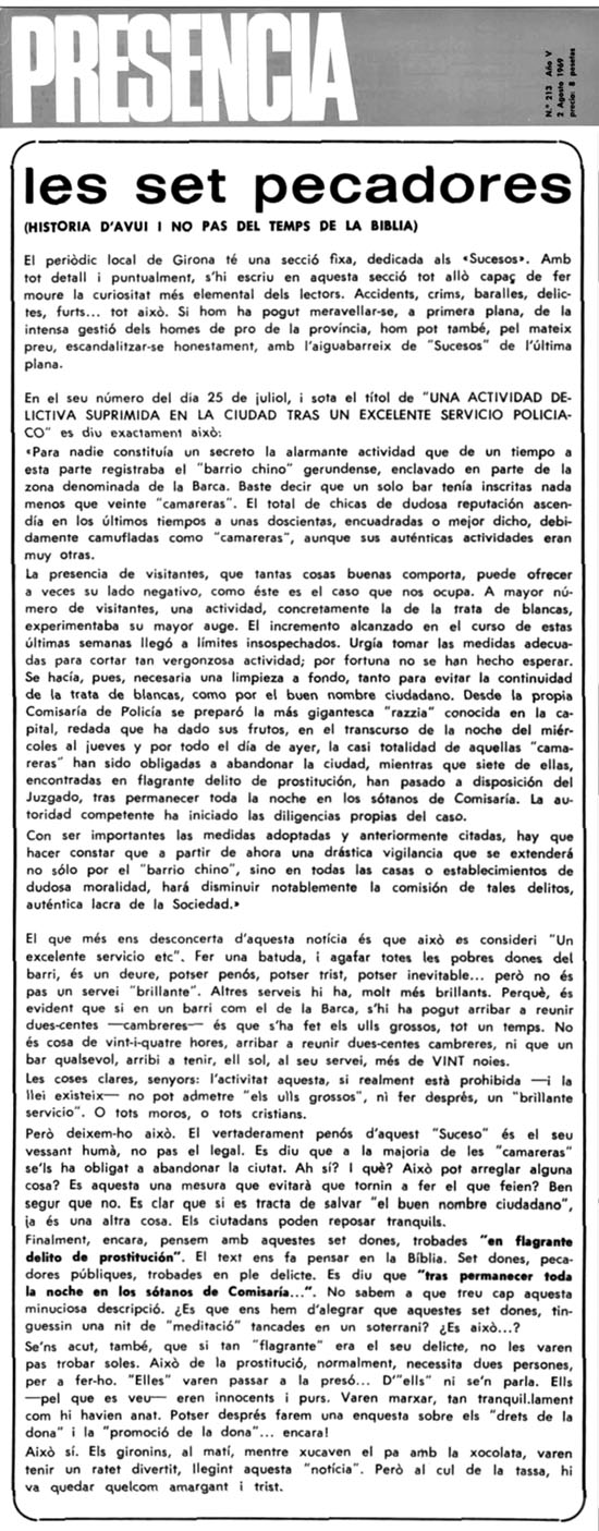 (Ampliar) - Premsa. Acció policial al 'Barri Xino'. Presència 2 d'agost de 1959. Fons Ajuntament de Girona.