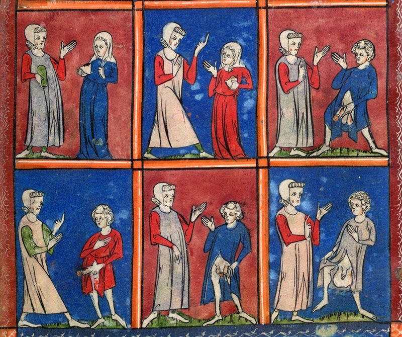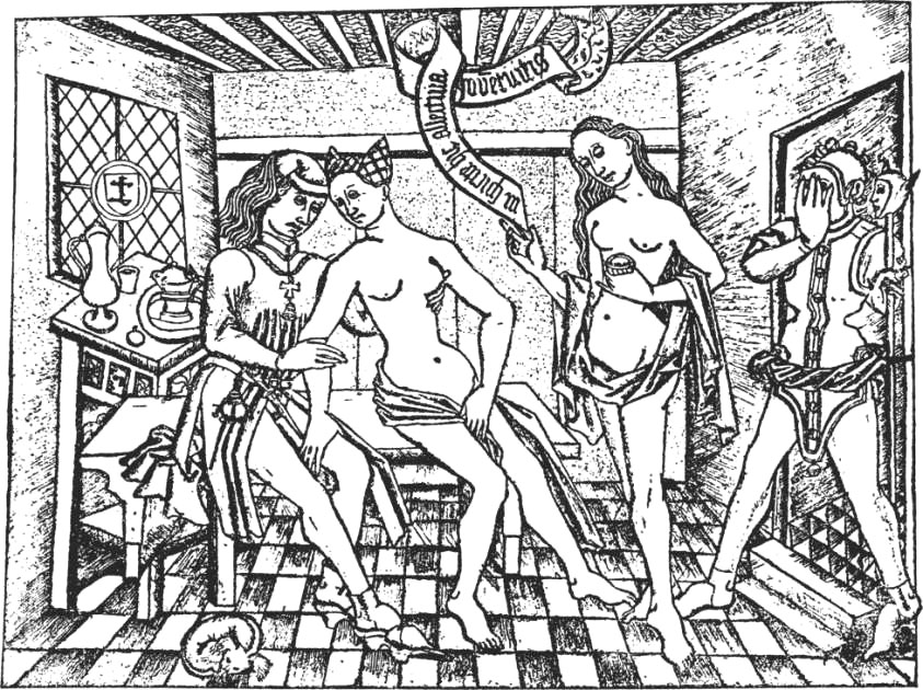 El 20 de març de 1479 els jurats ordenaren que totes les dones "qui viuen desonestament de lur cos isquen de carrés e lochs on habiten persones honestes, encare de llurs cases properes, e que se aparten al loch públich ja en la dita ciutat dedicat, e açò sots pena de LX (60) sous a cascuna". El 19 de març de 1484 es reprodueix l'ordenança amb paraules semblants i es torna sobre el tema el 24 d'abril del mateix any. ![]() (Veure'l sencer) - Malalties sexuals. Il·lustracions d'un manuscrit medieval. British Library. Viquipèdia. L'aparició de malalties.
