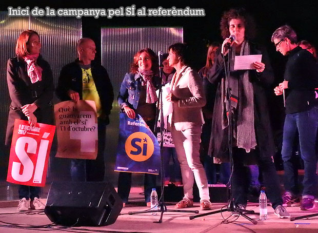 El dijous 14 de setembre de 2017, les entitats i els partits independentistes donar el tret de sortida a la campanya pel ‘sí’ al referèndum en un acte unitari a la plaça de la Independència, on es varen aplegar un miler de persones. Durant l’acte, organitzat per la plataforma Girona Vota, que reuneix vuit entitats i deu partits sobiranistes gironins, es varen descobrir i penjar els diferents cartells de campanya per demanar que l’1-O els gironins vagin a les urnes i votin a favor de la independència.