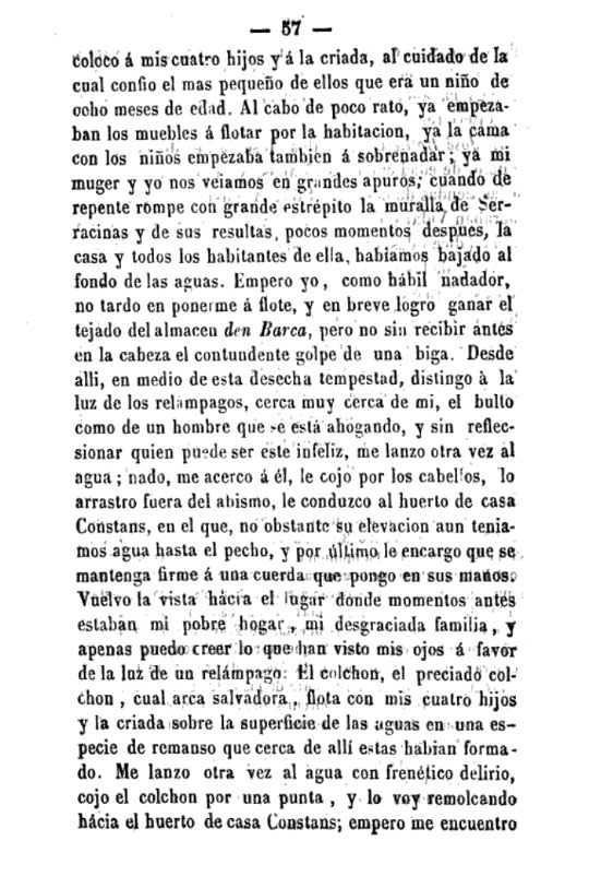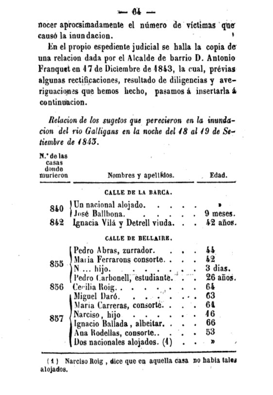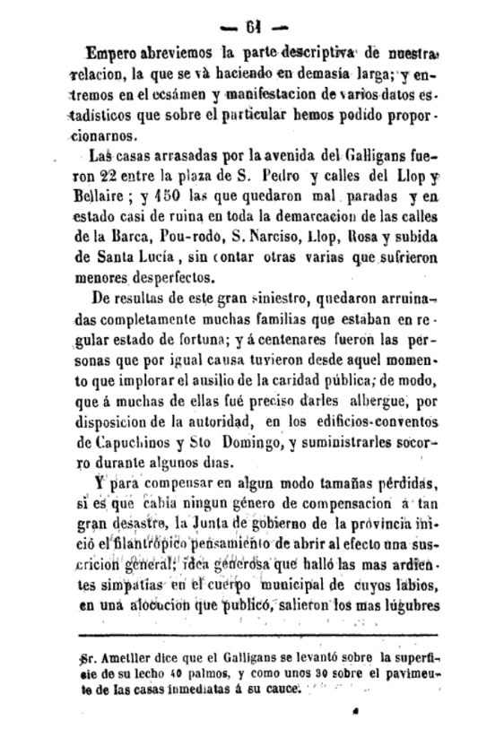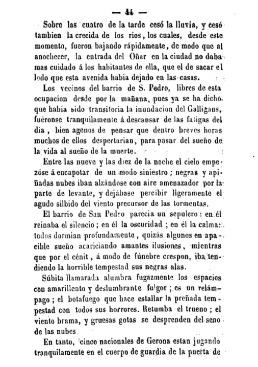 El 1861 Julián de Chía publicava un llibre titulat "Inundaciones de Gerona", en el que passava repàs històric a les principals riuades que havia patit Girona fins la seva redacció. Al llarg de vint-i-set pàgines descriu amb tot detall la tragèdia que va viura l'any 1843 Girona i molt especialment el barri de Sant Pere, on la riuada va provocar entre 115 i 130 morts, segons les fonts. Julián de Chía Yáñez. Historiador nascut a Toledo el 1818 i mort a Mataró el 1898, de família barcelonina, des dels quatre anys residí a Girona. Es va casar amb Concepció Bajandas i Feliu, de Palamós i va tenir un fil, Manel, que seria metge i un notable naturalista. Va ser secretari de l’ajuntament (1863) i arxiver municipal (1872-88). Publicà monografies sobre temes gironins, com "Inundaciones de Gerona" (1861), "El ducado y el principado de Gerona: apuntes históricos" (1881), "La festividad del Corpus en Gerona" (1883), "La música en Gerona" (1886) i "Bandos y bandoleros en Gerona" (1890), possiblement la seva obra més important, editada en tres volums. Bibliografia sobre Julián de Chía: |