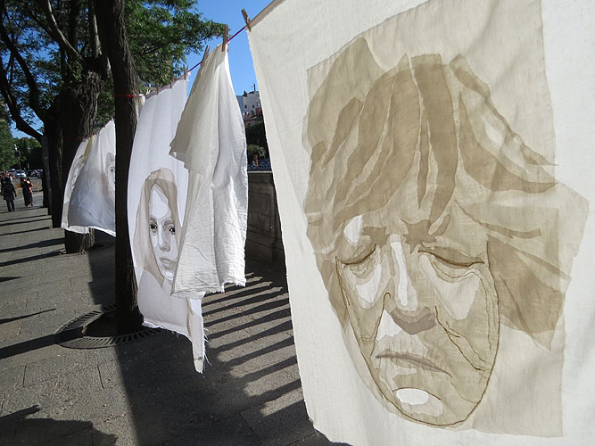 Reportatge fotogràfic de les accions i exposicions a altres espais: entrada de la Casa de Cultura, Rambla de la Llibertat, Voltes d'en Rosés, pujada del pont de Pedra, etc.