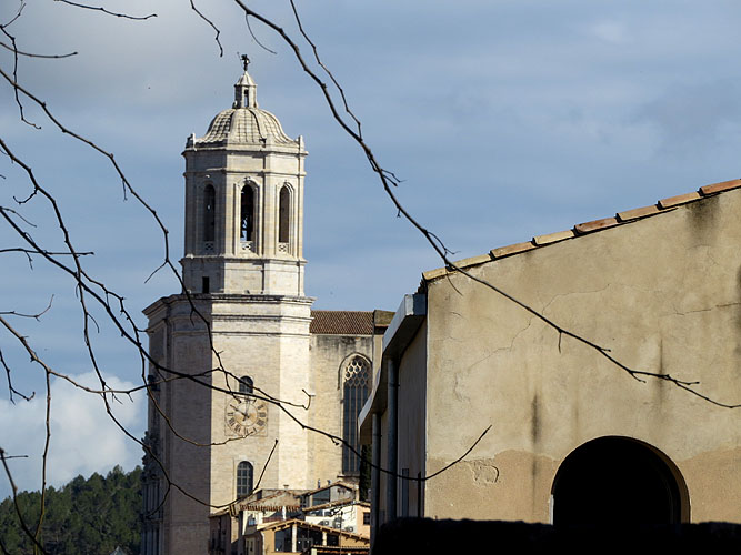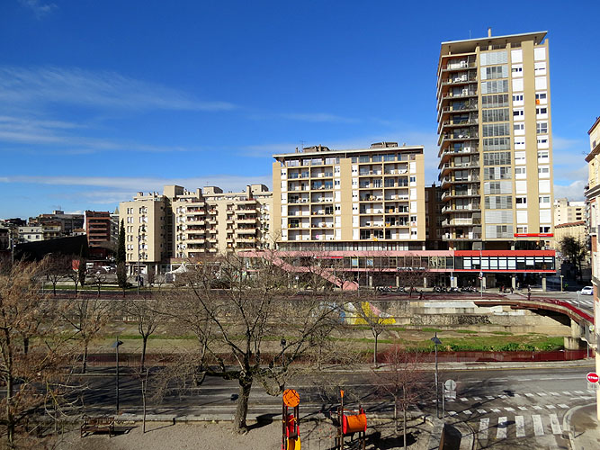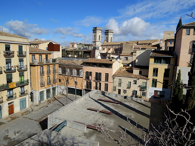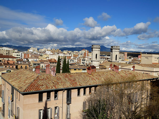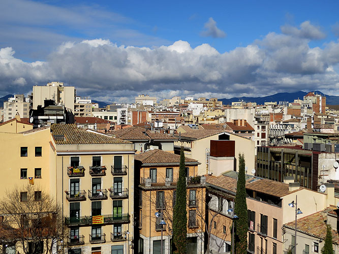 Vista des de la muralla del Jardí de la Infància, amb el monument "Contra l'invasor", de Miquel Blay, en primer terme