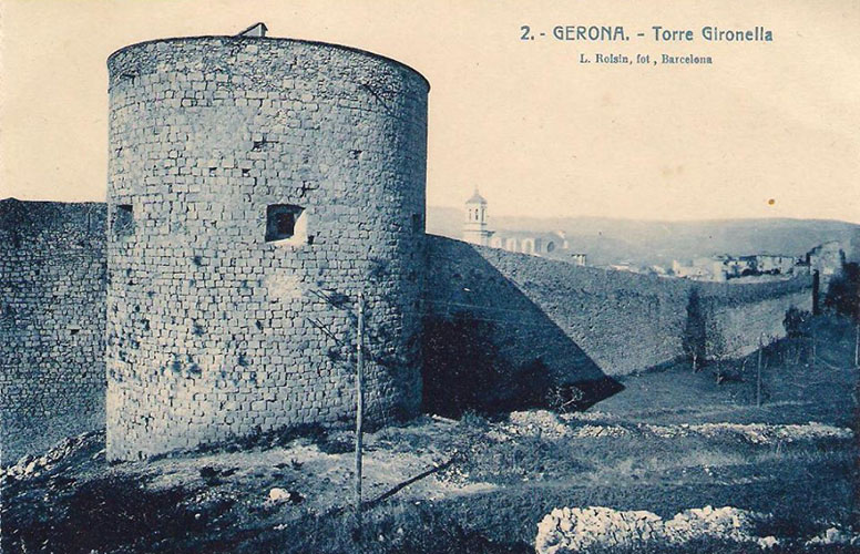 (Ampliar) - Vista de la Torre Sant Domènec amb els murs annexos, a la zona de la les Pedreres. 1911-1936. Valentí Fargnoli Iannetta. CRDI - Ajuntament de Girona.