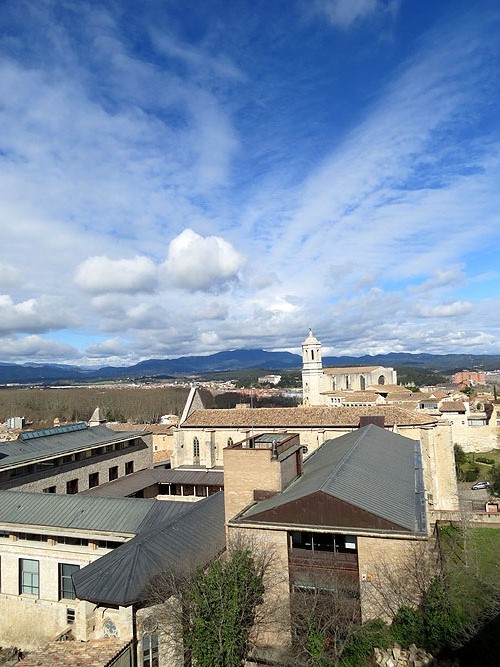 (Ampliar) - Vista dels teulats de Girona des del tram de muralla. En primer terme, les dependències universitàries del campus del Barri Vell.