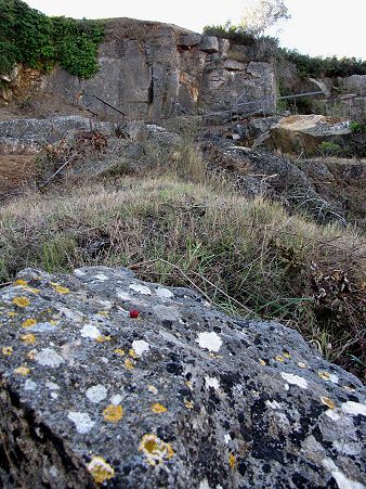 A l'inici de la pedrera, una de les moltes que hi havia en explotació, just on el camí de la Ferradura connecta amb el passeig dels Caputxins, es troben uns blocs de pedra tallada que evoquen els antics oficis vinculats a la pedra: picapedrers, talladors, pedrers, picadors, trencadors de pedra, adobadors, empedradors, bastaixos o camàlics, etc. Aquests oficis, que apareixen documentats des del segle XIV, estaven organitzats en gremis i confraries, un sistema que perdurà fins al primer terç del segle XIX, quan s'extingí amb la reforma liberal. En aquest indret, per les dimensions de l'esvoranc, ens podem fer una idea de la quantitat de pedra que va ser extreta amb finalitats constructives al llarg dels segle en què va estar en funcionament l'explotació. |