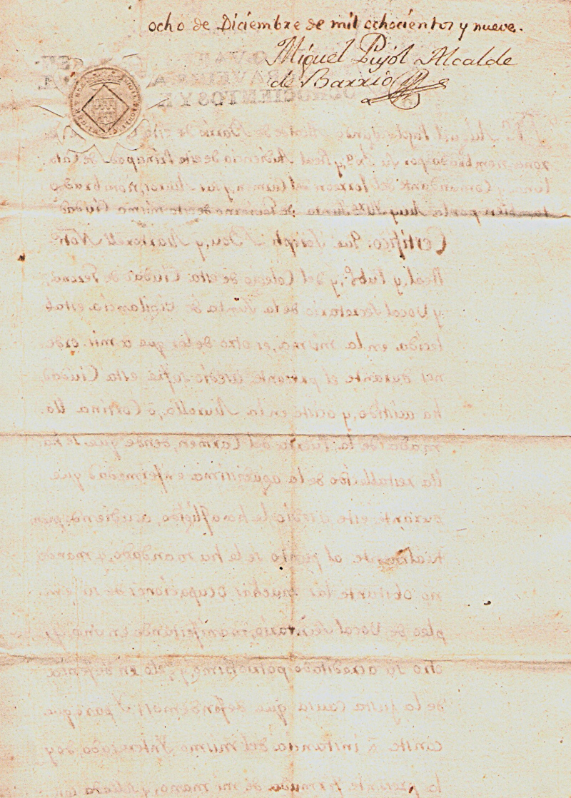 Y Paraque conste, en fuerza delo deliberado en la cesion de este dia doy la presente sellada con el escudo de Armas de esta ciudad de Gerona, á los diez dias del mes de Diziembre del año mil ochocientos y nueve.