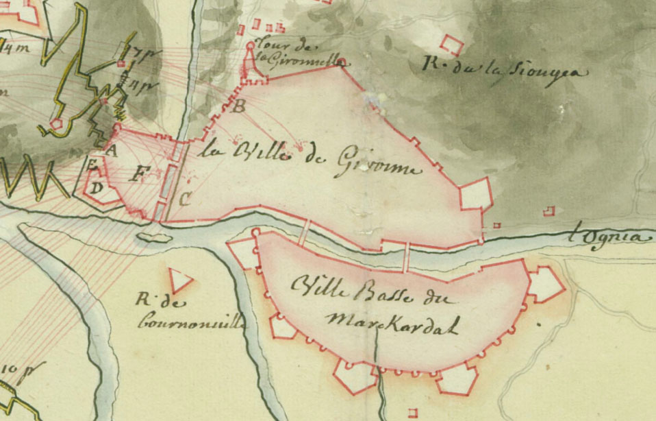 (Ampliar) - Detall de 'Gironne. Dessiné par A. Bertau'. 1711. Bibliothèque nationale de France.