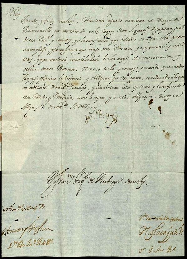 (Ampliar) - 9 de setembre de 1681. Carles II als jurats de la ciutat de Girona. Els avisa que ha nomenat per un altre trienni el duc de Bournonville com a lloctinent i capità general, alhora que els prega que l’assisteixin amb tot el que els ordeni. Lletres Reials. Ajuntament de Girona.