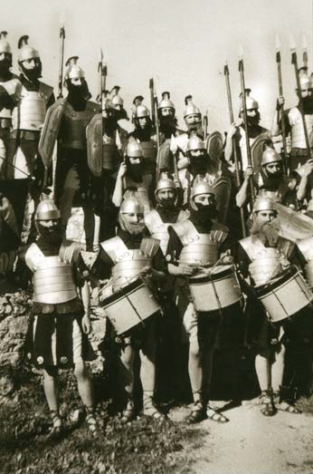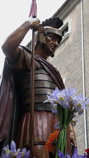 A més d'encapçalar les dues processons, anaven a buscar els pendonistes respectius, i fins i tot havien arribat a participar en les funcions religioses de la Catedral fins que el bisbe ho prohibí el 1851. S'acompanyaven amb música de flautes i tabals per a la marxa lenta, i una cobla els acompanyava per als desplaçaments ràpids, fins a mitjans segle XIX, quan sembla que es va ampliar el nombre de flabiols i es va composar, probablement, el que avui és la marxa ràpida. El que coneixem com a marxa lenta es composà, segurament, a les darreries del segle XVIII, sense que quedi clar quin és l'origen d'aquesta antiga melodia. ![]() (Ampliar) - Imatge dels Manaies primitius.Expliquen diverses anècdotes que algunes vegades el comportament dels Manaies en el decurs de la processó havia estat un irregular i, alguns d'ells, ja coneguts de tothom per la seva afició a la disbauxa, havien arribat a assistir-hi beguts. Segons Grahit i Grau, el darrer capità manaia gironí, en Feliu, el nom del qual era Salip, era molt popular per les seves maneres improcedents durant la processó, conseqüència de l'aiguardent amb que el convidaven, amb els seus, als indrets on precisaven els seus serveis. Potser per això, en l'imaginari popular gironí (tal com en altres poblacions de les nostres terres) el mot "Manaia" esdevingué, amb una injusta generalització, sinònim de "tronera". Pensem, de totes maneres, que l'element lúdic en les processons religioses d'època moderna en general és un fet freqüent i gairebé indestriable, que les fonts ens testimonien abastament. Els "nous" Manaies La Guerra Civil va aturar totes les manifestacions religioses públiques. Immediatament després de l'entrada de les tropes franquistes a Girona (el febrer del 1939) hi hagué la iniciativa de restaurar la processó de Setmana Santa, però això no fou possible per la penúria del moment. No obstant, l'entusiasme dels vint-i-sis Manaies refundadors i el suport episcopal van permetre que la processó sortís de nou el 1940, Manaies inclosos: els primers equips es llogaren en un magatzem de teatre de Barcelona, i la música formada per un flabiol, una ocarina, un pifre, aquest a càrrec de Joaquim Pla i Dalmau, i un tambor. ![]() ![]() Penons dels Manaies. Esquerra: de l'any 1942. Dreta: l'actual. L'any 1942 ja s'havia ampliat el maniple a 35 manaies, amb cinc equips nous: un de centurió, amb la part metàl·lica de llautó repujat, dos de manaia i dos de manaia petit o infant. Amb data 5 d'octubre d'aquest any va quedar constituïda la Pia Unió de Jesús Crucificat. ![]() Manaies encapçalant la processó de Setmana Santa al carrer dels Alemanys, 1941. Col·lecció Ajuntament de Girona El Maniple de Manaies experimentà, a partir d'aquesta etapa inicial, tota una sèrie d'ampliacions graduals i millora dels equipaments: cuirasses de llautó, ampliació i estructuració de la banda, creació de dues i després de tres optiades, creació de la secció d'èquites (cavalleria), etc., fins assolir les característiques de l'equip i l'estructura del Maniple actual, amb una plantilla de 114 efectius l'any 1999. Bibliografia ![]() |