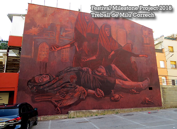De l'1 al 22 de setembre 2018 es va celebrar a Girona la setena edició del Festival d’Art Urbà Contemporani Milestone Project, que va comptar amb la participació de quatre grans artistes internacionals: Marine Philomen Roux, que va realitzar la il·lustració per al cartell del festival, i Andrea Btoy, Milu Correch i Hyuro, que varen realitzar les seves intervencions plàstiques a diversos indrets de la ciutat. El reportatge recull el treball de Milu Correch, sobre la llegenda de la bruixa de la Catedral, realitzat a la paret mitjanera del parking del restaurant Can Roca, al carrer Cadí - Germans Sàbat, al barri de Taialà.