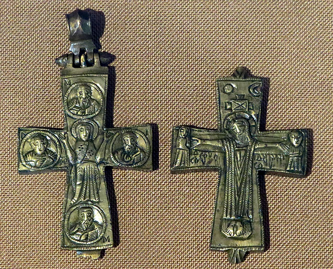 El Museu d'Art conserva i exhibeix una col·lecció d’època altmedieval representativa del desenvolupament artístic de la Catalunya d’època comtal. D’aquest moment són clau les obres religioses, en mobiliari litúrgic i la decoració monumental, realitzades principalment als monestirs i centres catedralicis, que estigueren durant segles en la primera línia creativa artística dels comtats pirinencs i prepirinencs, que al nordest aglutinava el bisbat de Girona. ![]() Crist en Majestat. Segle XII. Monestir de Sant Miquel de Cruïlles - (Ampliar) De l’aparició del primer cristianisme s'hi exhhibeix un fragment de làpida paleocristiana del segle IV, trobada a Empúries, dels darrers segles de domini romà. De l'època comtal, es mostren peces molt interessants com el vas hispano-àrab de Sant Vicenç de Besalú, el conjunt litúrgic de Sant Pere de Rodes, amb l’ara portàtil del segle X, el Crist en Majestat procedent del monestir de Sant Miquel de Cruïlles i la Majestat del priorat de Sant Joan les Fonts. En l’àmbit pictòric sobresurten l’Homiliari de Beda, de l’església de Sant Feliu de Girona, i un fragment de la Pentecosta del Mestre d’Osormort, procedent de l'absis de Sant Joan de Bedenga de Bellcaire, al Baix Empordà. ![]() Estauroteca bizantina ? Segle VI-XI. Monestir de Sant Pere de Rodes - (Ampliar)
