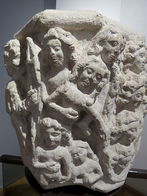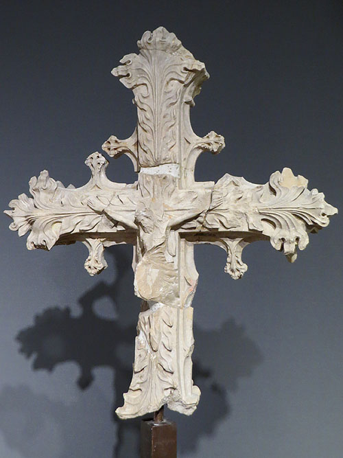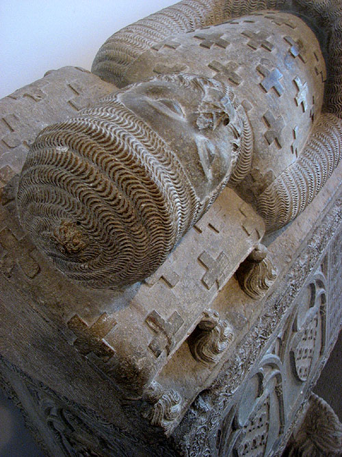 Jofre Gilabert de Cruïlles va ser almirall de la Corona d’Aragó. La seva sepultura duu esculpida la figura del noble a la coberta, on hi és representat vestit de guerrer, amb cota de malla i espasa a les mans. L’escut d’armes representa l’heràldica de la casa de Cruïlles. ![]() Calvari. Segona meitat del segle XIII. Detall. Catedral de Girona - (Ampliar) Mestre Bartomeu (Ca. 1250-1300).
