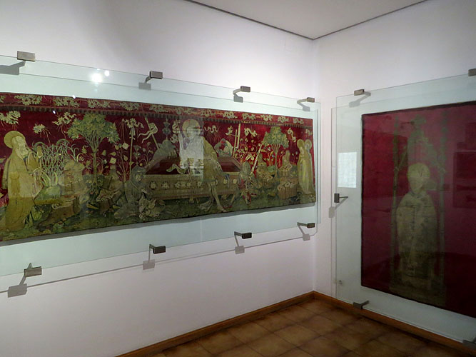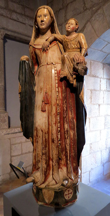 Museu d'Art de Girona GÒTIC (2a. part). Girona i la seva àrea d’influència varen tenir un paper cabdal en l’arribada i difusió de l’art procedent del nord de França que es començà a difondre arreu del continent des d’inicis del segle XIII. Al Museu d’Art es poden apreciar peces escultòriques amb fusta i pedra, elements litúrgics tèxtils, retaules rellevants i excepcionals, a banda d’una bona mostra de tombes, relleus i capitells dels tallers de picapedrers gironins, i altres peces rellevants i excepcionals, com les taules de vitraller que van servir per realitzar els vitralls de la zona de l’absis de la catedral de Girona. ![]() Sepultura de Jofre Gilabert de Cruïlles. Segle XIV. Pedra calcària. Convent de Sant Francesc, Girona - (Ampliar) Sarcòfag de Jofre Gilabert de Cruïlles. Segle XIV.