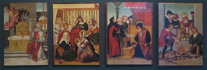 És una pintura sobre taula atribuïda a Jan Massys. Obra segurament forana les raons per les quals es troba avui a Catalunya i el camí que va seguir fins a arribar al museu, són encara desconeguts. ![]() Anunciació a Zacaries. Naixement de Sant Joan Baptista. Pere Mates. 1536. Retaule de Sant Joan Baptista. Detall. Oli sobre fusta - (Ampliar). Obra sencera Pere Mates (Ca. 1490-1558).