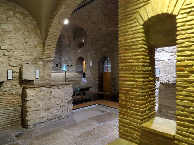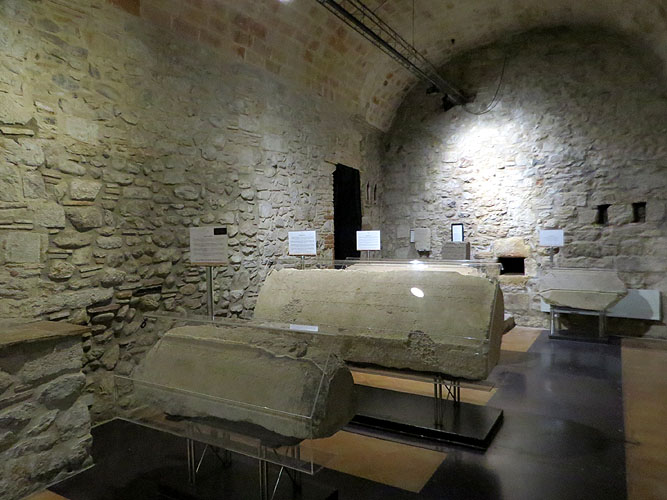 Museu d'Història dels Jueus 5. El fossar dels jueus. Passeig imaginari pel que va ser el cementiri de la comunitat des del segle XIII, situat al nord de la ciutat. La sala mostra en un panell lluminós el recorregut que havien de fer les comitives fúnebres des del Call al fossar. Les làpides aquí exposades contenen bells epitafis escrits en record de les jueves i dels jueus que varen viure a la ciutat, unes pedres amb nom que són una de les grans joies del Museu. [Article principal] . ![]() Vista parcial de una de les sales dedicades al fossar dels jueus - (Ampliar) ![]() Vista parcial de una de les sales dedicades al fossar dels jueus - (Ampliar) ![]() Làpida funerària. Segle XIII-XIV. Montjuïc, Girona. [Aquesta làpida sepulcral] és del gran R. Josua, fill de R. Sésset, que es va dirigir a la seva mansió eterna el mes de Quisleu de l'any ... tingui pau, reposi en el seu llit fúnebre per rebre la seva recompensa a la fi dels dies. Amén - (Ampliar) ![]() Vista parcial de una de les sales dedicades al fossar dels jueus - (Ampliar) ![]() Vista parcial de una de les sales dedicades al fossar dels jueus. Làpida funerària. 1198. Montjuïc, Girona - (Ampliar) ![]() Vista parcial de una de les sales dedicades al fossar dels jueus - (Ampliar) ![]() Làpida funerària. Segle XIV-XV. Carrer de Sacsimor, Girona. Aquesta és l'estela fúnebre de l'honrada N'Estelina, esposa de l'il·lustre i insigne En Bonastruc Jucef. Tinguin la seva part al jardí de l'Edèn. Amén - (Ampliar)