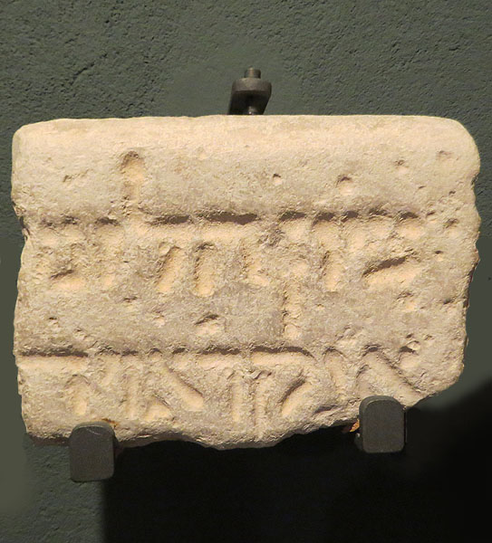 Làpida funerària. Segle XIV. Torres de Palau, Girona. Estela funerària de l'infant encisador Jucef, que descansi en el Parad&iacutue;s, fill de R. Jacob, que el guardi la seva Roca i el seu Redemptor - (Ampliar)