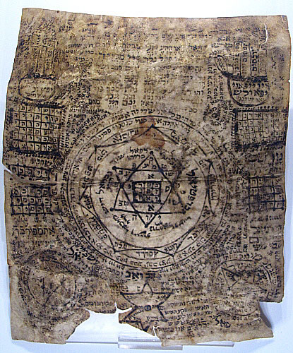 Amulet hebreu amb escrits cabalístics d'invocació als àngels protectors. Tinta sobre pergamí. Segle XVII. Europa de l'est - (Ampliar)