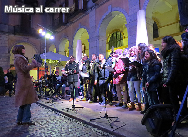 Durant les festes de Nadal, els carrers de Girona han estat escenari d'actuacions musical de diversos estils. En el reportatge, l'actuació del grup Les Anxovetes el dissabte 6 de desembre a la plaça de la Independència, amb un repertori d'havaneres, i del diumenge 21 de desembre al mateix indret, a càrrec de la coral Àkan, amb un repertori de nadales i cançons tradicionals.