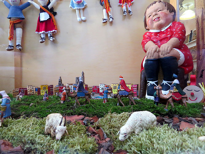 Durant les festes de Nadal, hi ha botigues que decoren els seus aparadors amb pessebres clàssics: els de molsa, ponts, cases i rius, l'anunciació als pastors i els Reis, la dona que renta i el pagès que llaura.