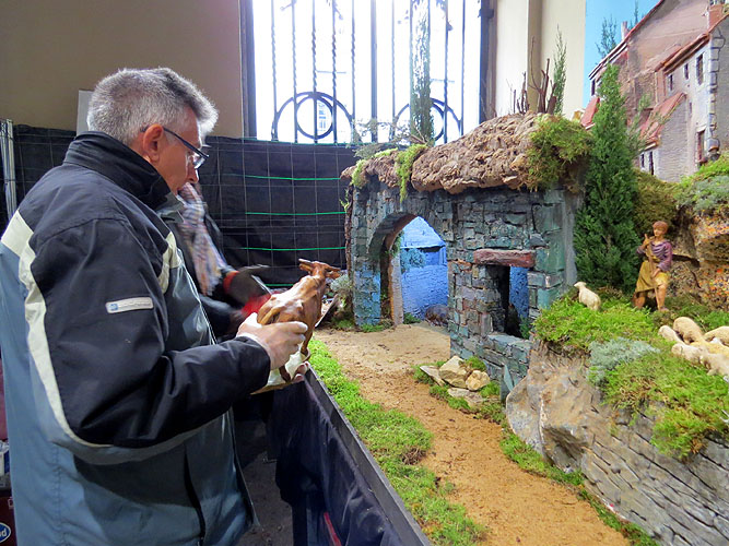 La construcció del pessebre per l'Associació de Pessebristes de Girona