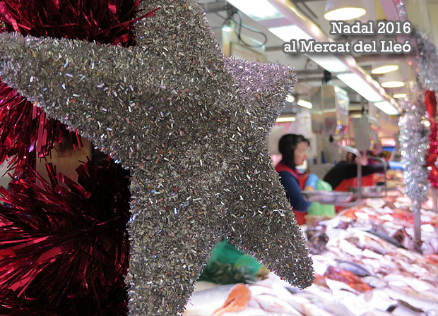 Les festes de Nadal també arriben a les parades del comerciants del Mercat del Lleó. Durant aquests dies, llueixen decoracions amb temàtica nadalenca al costat del productes propis de les dates. També s'hi poden trobar diversos Tions, un a cada porta d'entrada, satisfactòriament alimentats amb els productes frescos del Mercat.