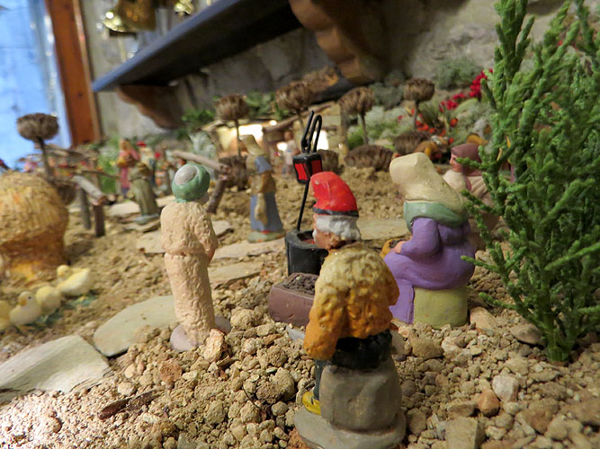 Durant les festes nadalenques, diversos establiments de Girona han ornat els seus aparadors amb pessebres. Les imatges del reportatge fotogràfic corresponen al de la botiga-taller del llauner-bronzer Ramon Boix, al carrer Ballesteries, qui construeix cada any un pessebre tradicional amb les figures clàssiques i elements arquitectònics, com cases i fonts, de construcció pròpia, amb un disseny i composició cada any diferent.