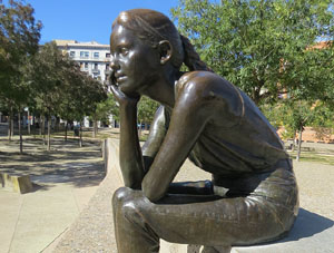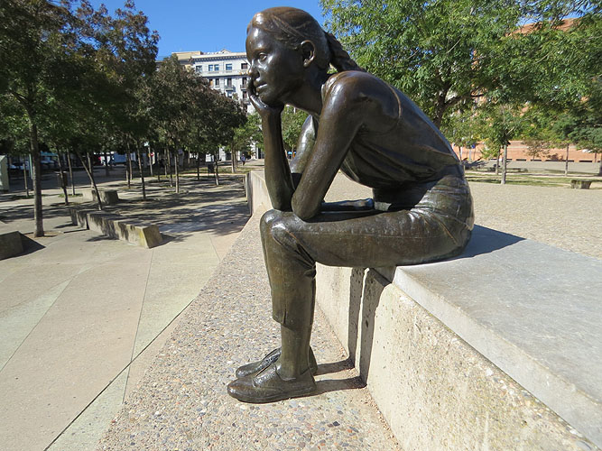 El projecte per reurbanitzar l'espai que actualment ocupa la plaça de l'U d'octubre de 2017 data de l'any 1982. Un any després, els responsables van demanar a l'escultor madrileny Francisco López Hernández que realitzés una escultura d'aquesta nena, Maria del Mar Cabeza Catalán, que llavors tenia quatre anys.