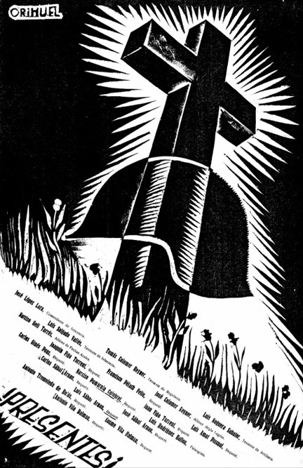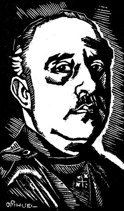 (Ampliar) - Dibuix publicat al diari 'El Pirineo' de l'1 d'abril de 1940. També va ser reproduït a la portada de l'exemplar del 17 de juliol de 1940.