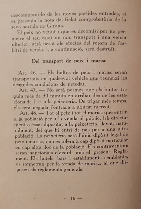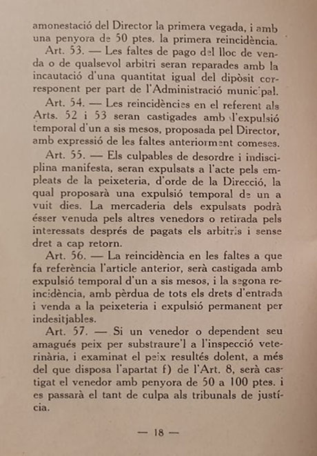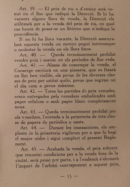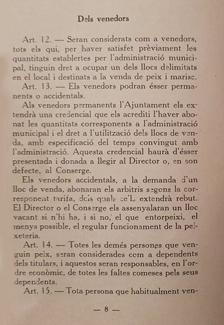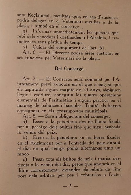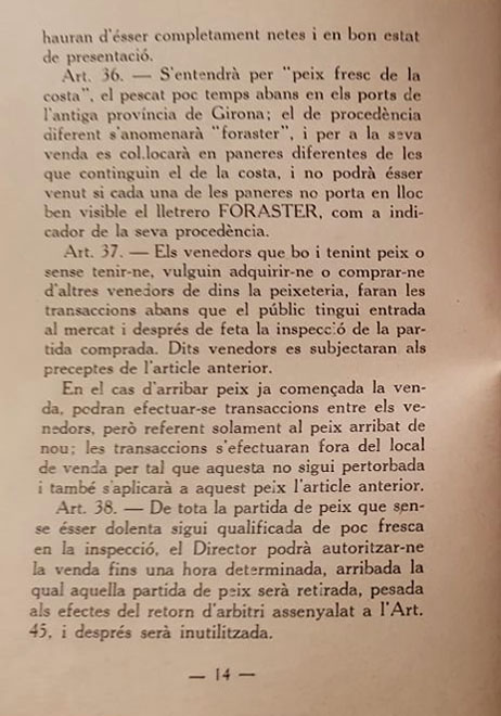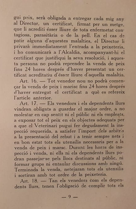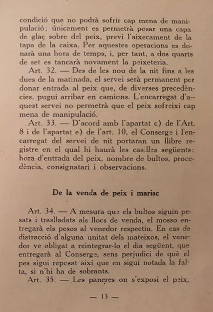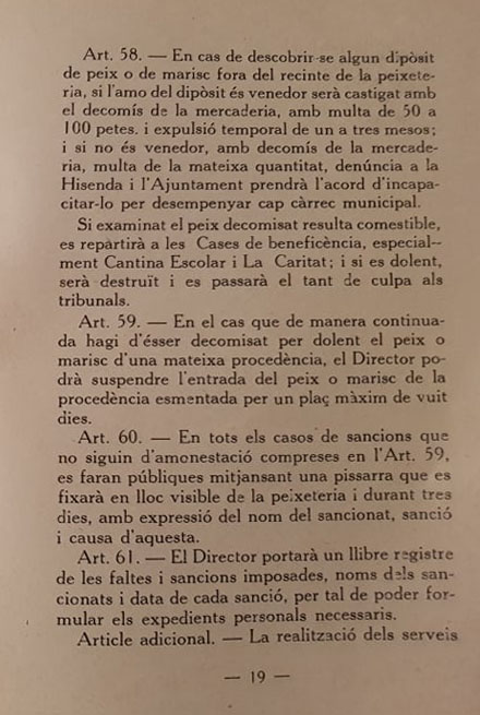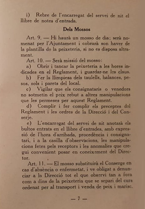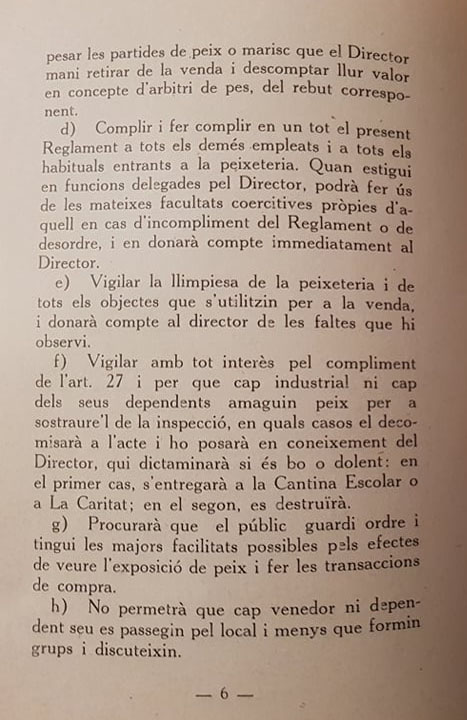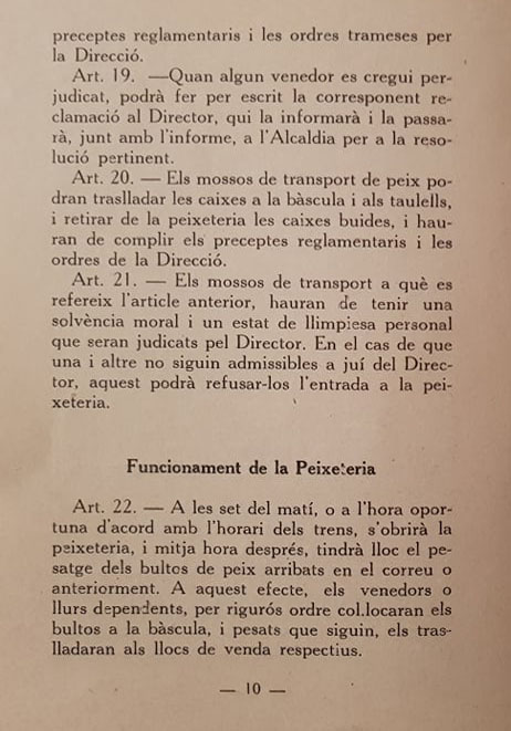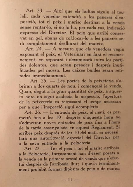 Reglament de la Peixeteria. 1931. Col·lecció particular. Gentilesa d'Abraham Simon. |