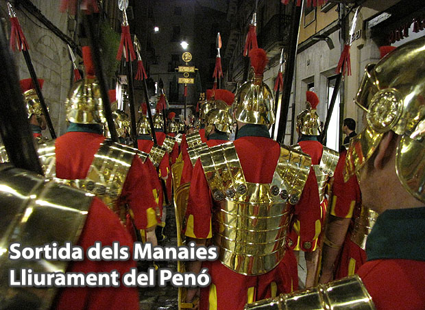 La Confraria va sortir a les vuit del vespre de l'església de Sant Lluc, "Castrum" dels Manaies. D'allà es va dirigir a la plaça de Sant Feliu, carrer Ballesteries, Cort Reial, plaça de l´Oli i Ciutadans, per anar a parar a la plaça del Vi, espai on els manaies van oferir diverses figures.