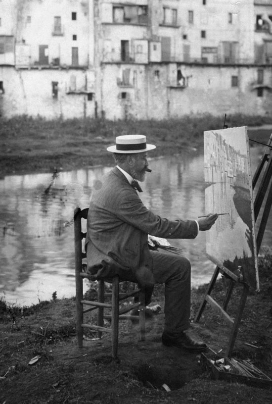 (Ampliar) - Santiago Rusiñol pintant les cases de l'Onyar. Imatge Museu d'Art de Girona.