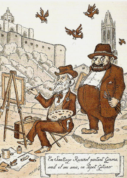 Parece que cuando Santiago Rusiñol venía por Gerona, 'En Pepet Gitano' se convertía en voluntario ayudante del escritor. Le llevaba las telas en sus salidas pictóricas y le acompañaba en la semibohemia a que podía entregarse en la Ciudad. En una ocasión, Rusiñol invitó al gitano a cenar en 'Cal