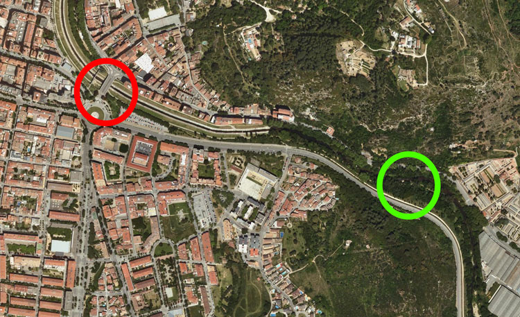 Les dues localitzacions del Pontem Fretum. A l’esquerra, la tradicional i, a la dreta, la proposada. Foto: Vissir3 - (Ampliar)