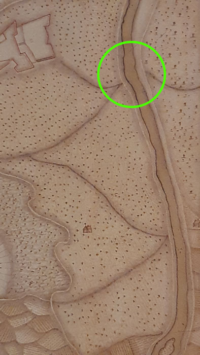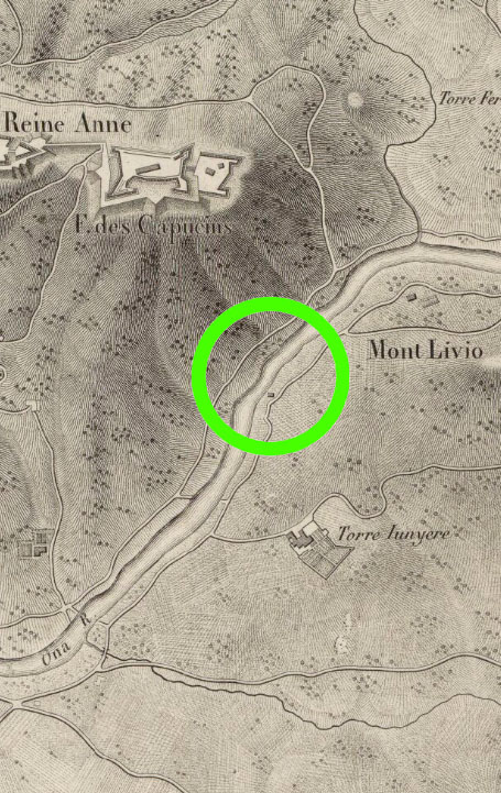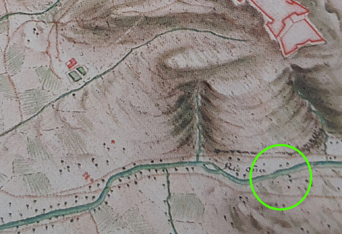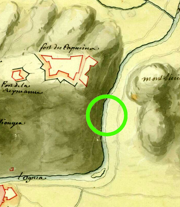 Amb tot, hi ha diverses cartes militars del segle XVIII, alguna amb traços força precisos, que mostren unes vies que es dirigeixen cap al riu, exactament al lloc proposat, tot i que no el travessen. S’ha de suposar que els cartògrafs van voler deixar constància del que havien contemplat, que possiblement eren les exigües restes dels oblidats camins. Desafortunadament, no ofereixen cap més indicació.