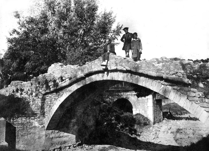 (Ampliar) - Antic pont del Dimoni (segle XIV) de Santa Eugènia de Ter, el 1900. El Pontem Fretum podria haver tingut un aspecte semblant. Autor desconegut, CRDI - Ajuntament de Girona