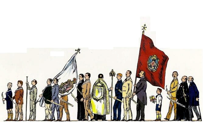 Processó de Corpus a Girona l'any 1918 . Dibuixos del Sr. Joaquim Pla i Dalmau.